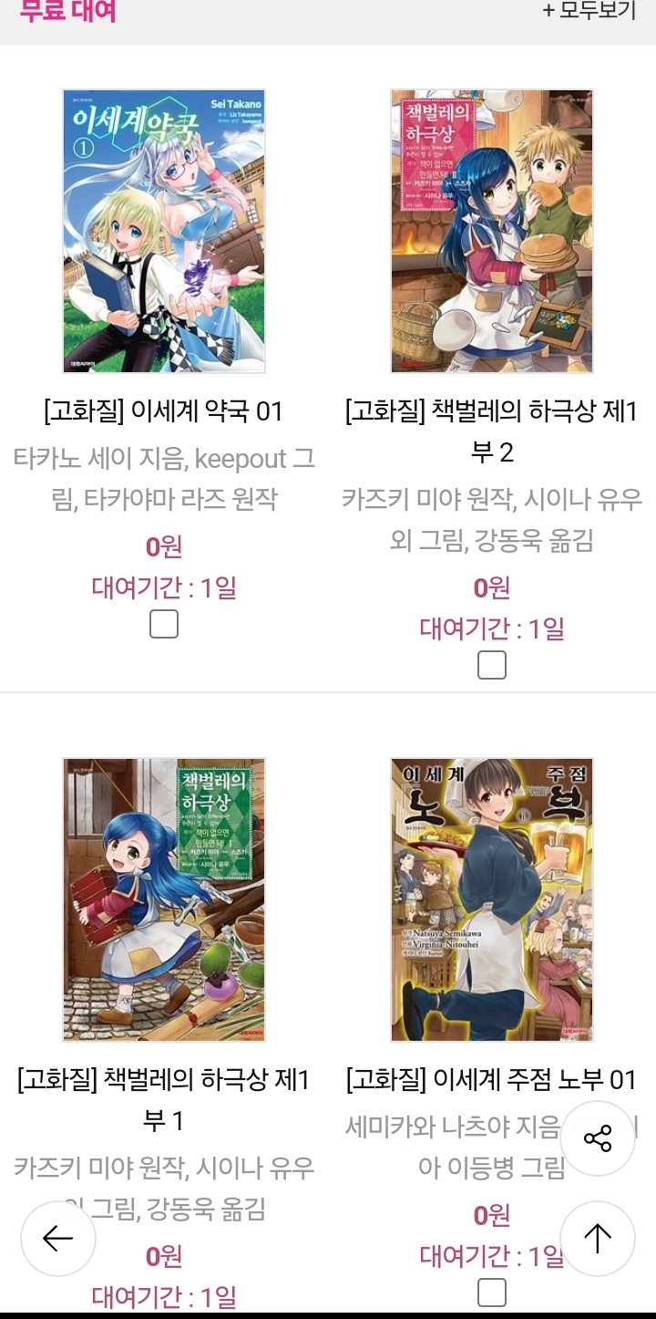 이세계 주점 노부 1, 이세계 약국 1, 책벌레의 하극상 1부 1-2, (대원씨아이, 맛보기 무료전자책 이벤트, 알라딘) 본문