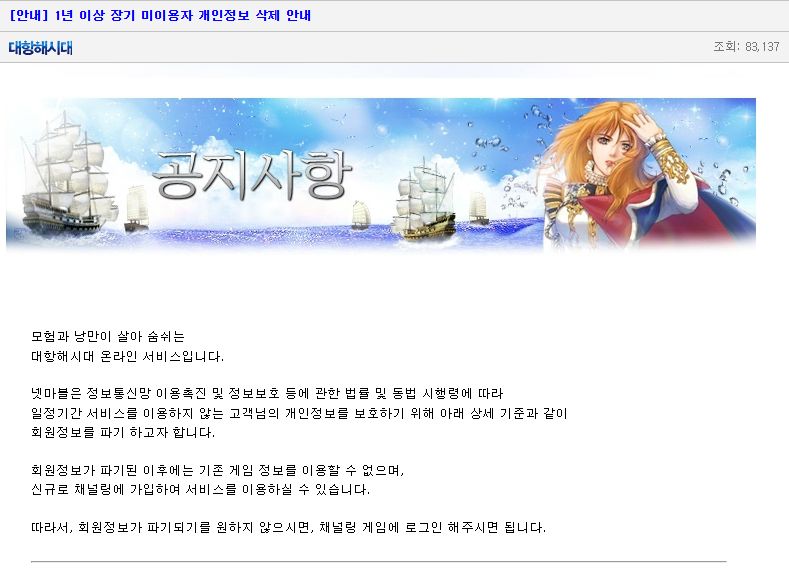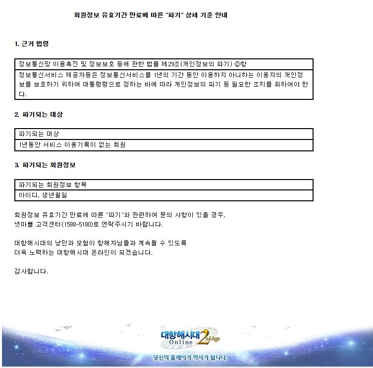 [안내] 대항해시대 온라인 영업양도로 인한 개인정보 이전 안내 2024.10.29