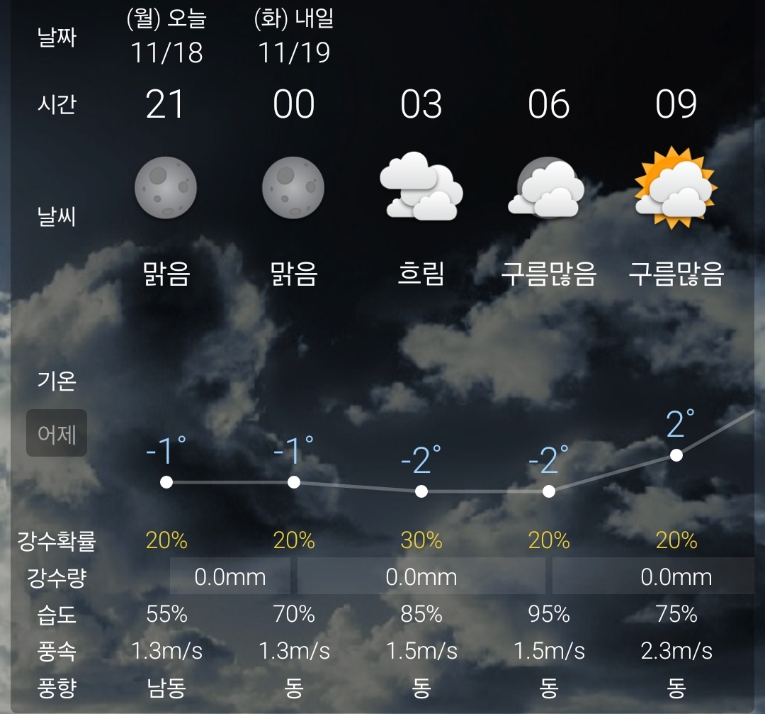 2024.11.17.밤에 이어 18일 밤도 기온 영하 (19일 밤도 아마 0도 근처) 본문
