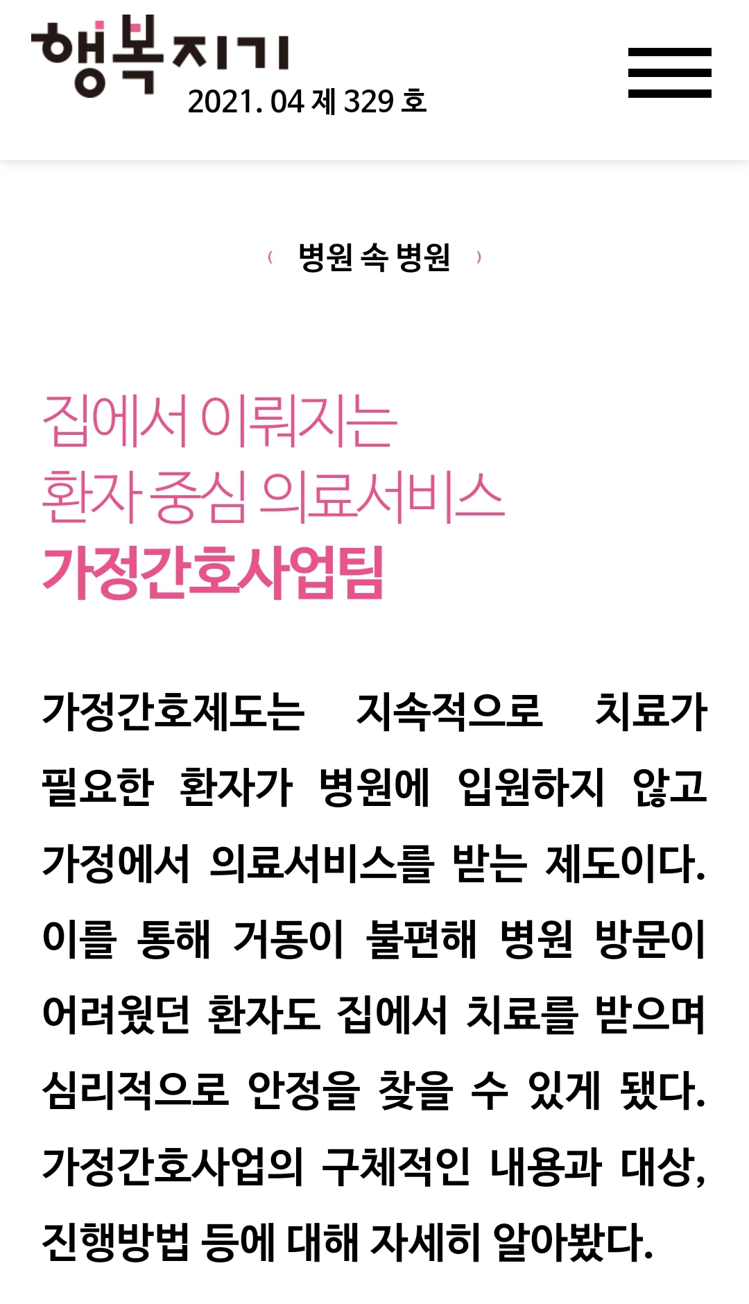 가정간호에 대한 정보와 소식을 확인할 수 있습니다.