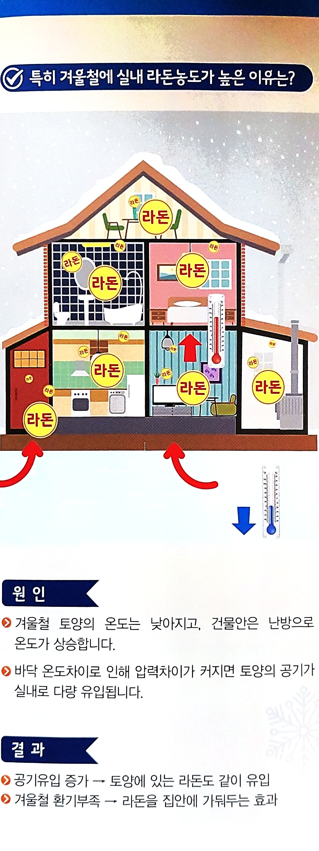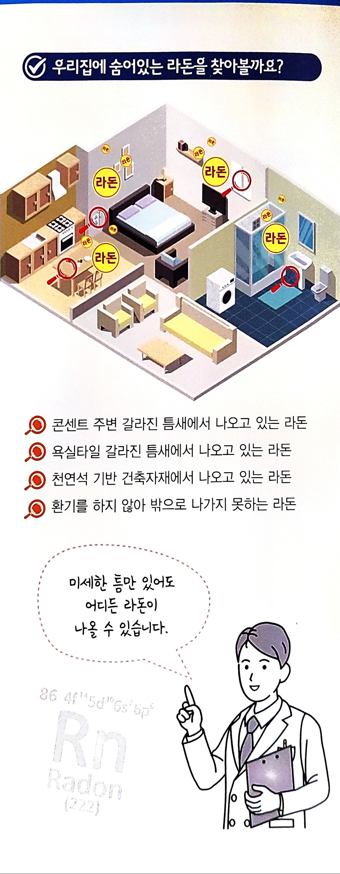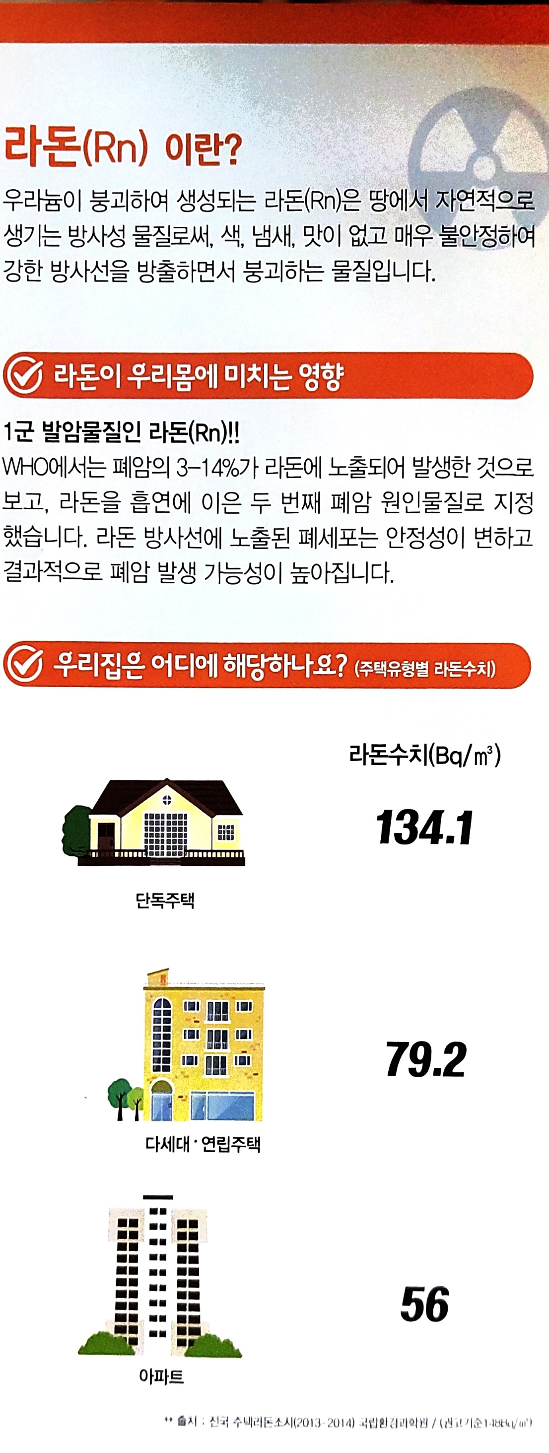 토양 라돈이 스며올라오거나, 일부 건축자재에서 스며나오거나