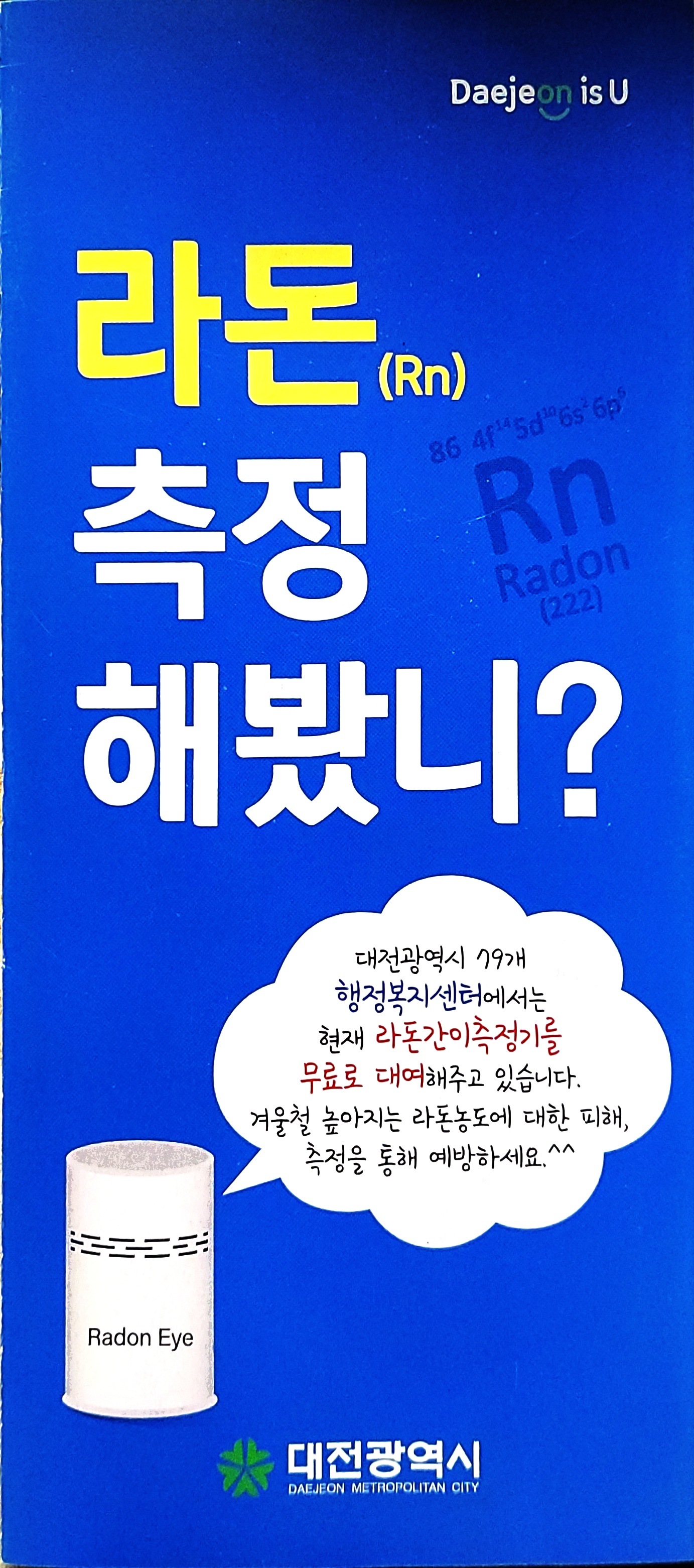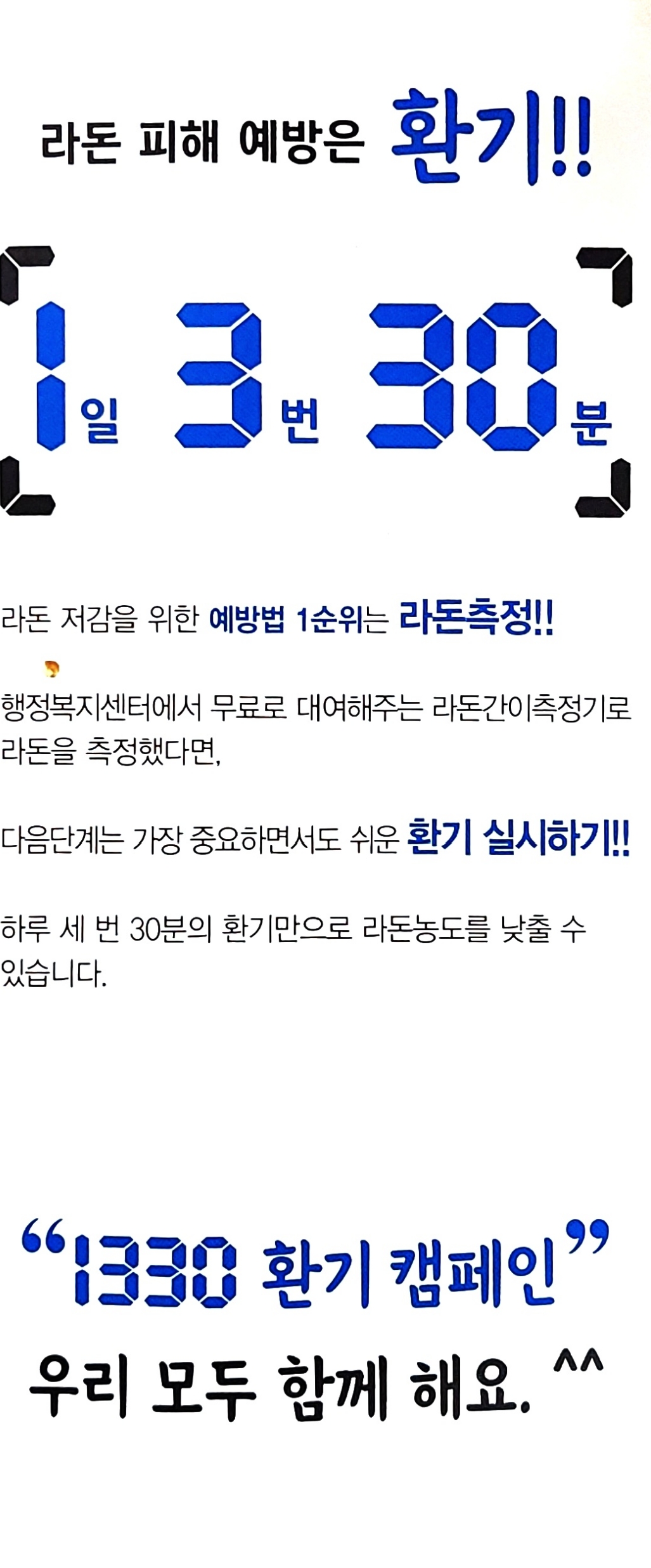 모 지자체의 라돈측정 안내, 겨울철 실내공기 환기 홍보 본문