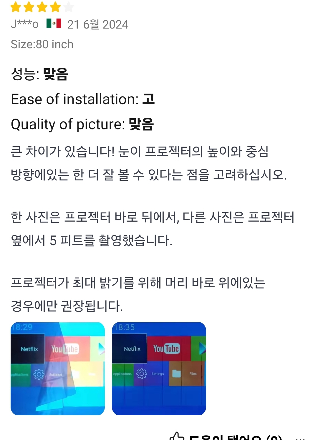 특히 암막커튼 확실하개 치고, 또는 밤에 조명 다 끄고 본다면 이게 기본이다.