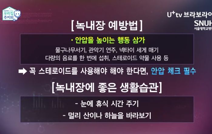 요즘은 스마트폰때문인지 20대 녹내장도 있다. 녹내장은 증상이 없지만 급성일 때는 또 다를 수 있다. 눈아프다면 안과에 가봐라. 눈이 아프지 않아도 1년에 1번 정도는 안과에 가서 검진받아봐라.
