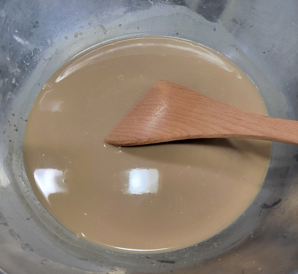 뽀얀 가루를 얻고 남은 것도 젤라틴2을 섞으면 도토리묵맛나는 묵을 만들어먹을 수는 있어서,