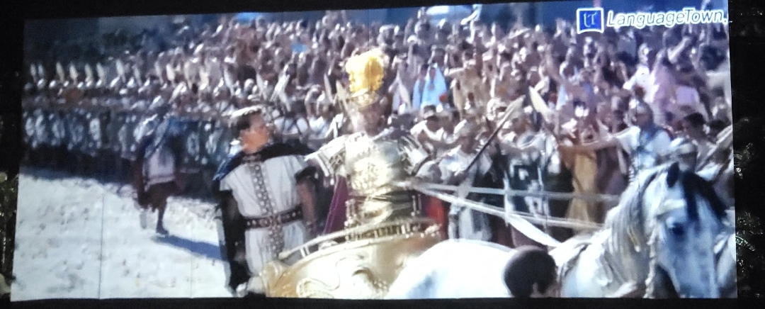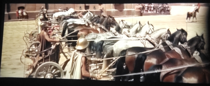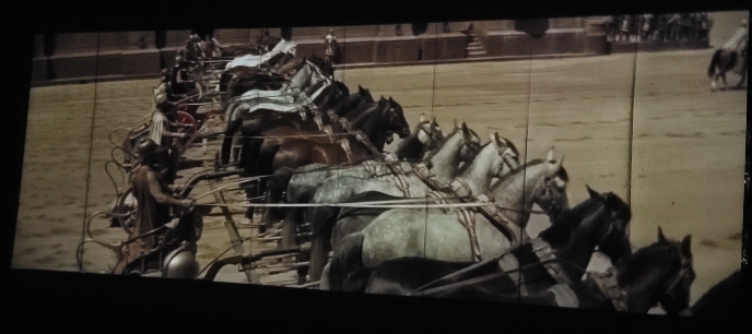 차이가 확실히 나는 장면을 짹은 것. 소스는 유튜브 영상클립: 벤허 구판의 경기장 씬.