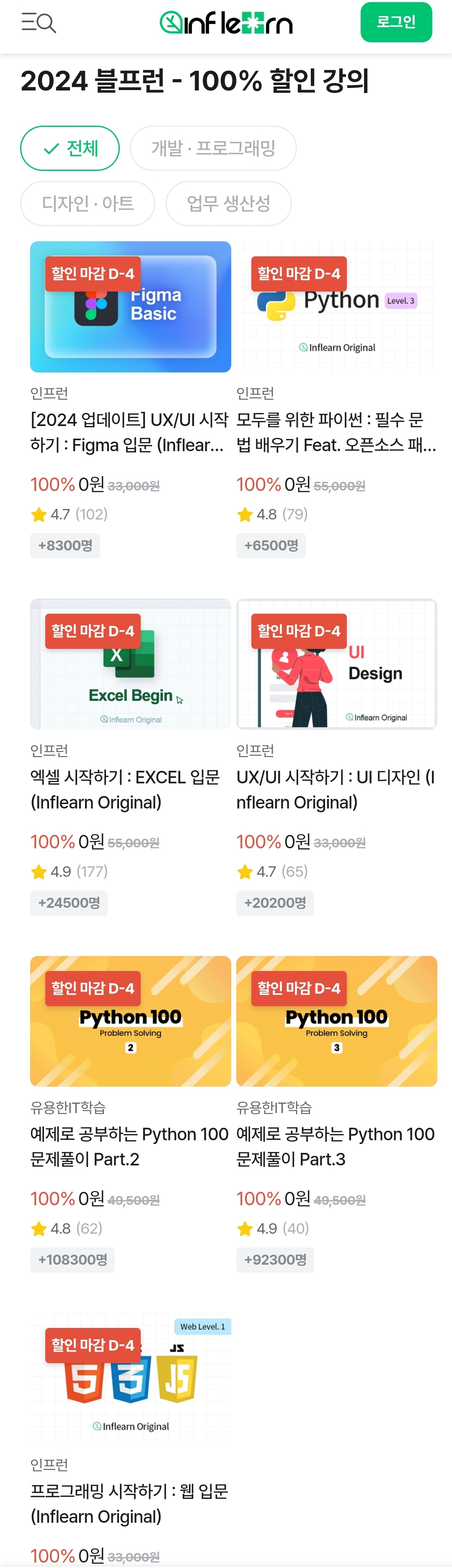 2024 블프런 - 100% 할인 강의 - 인프런 | 학습하기