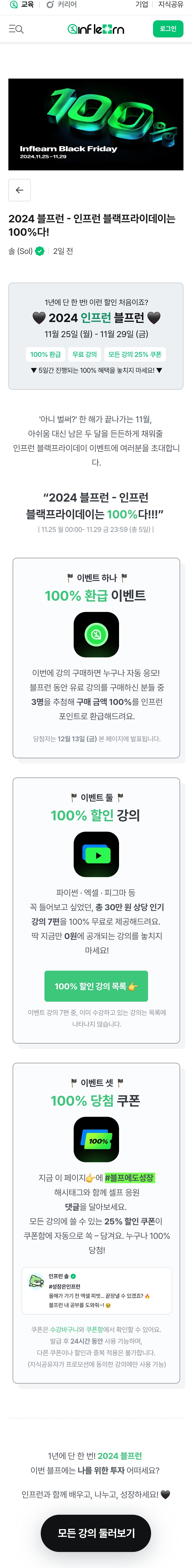 2024 블프런 - 인프런 블랙프라이데이는 100%다! - 인프런 | 스토리