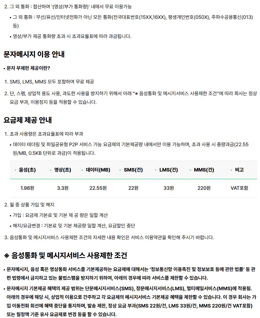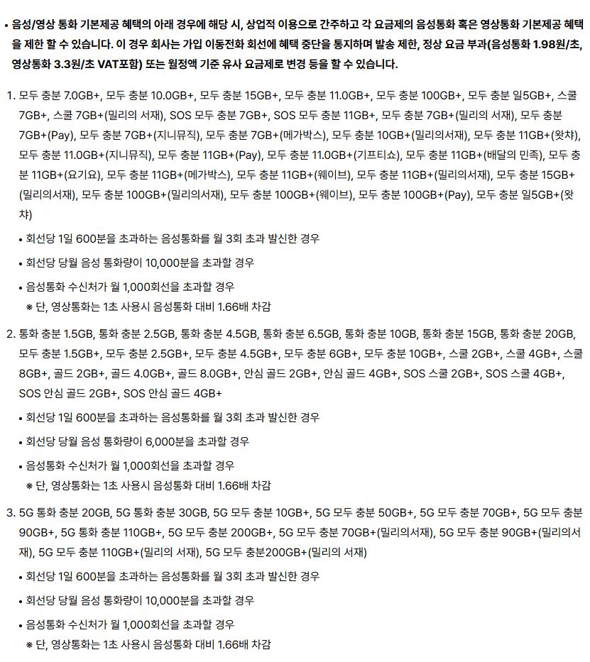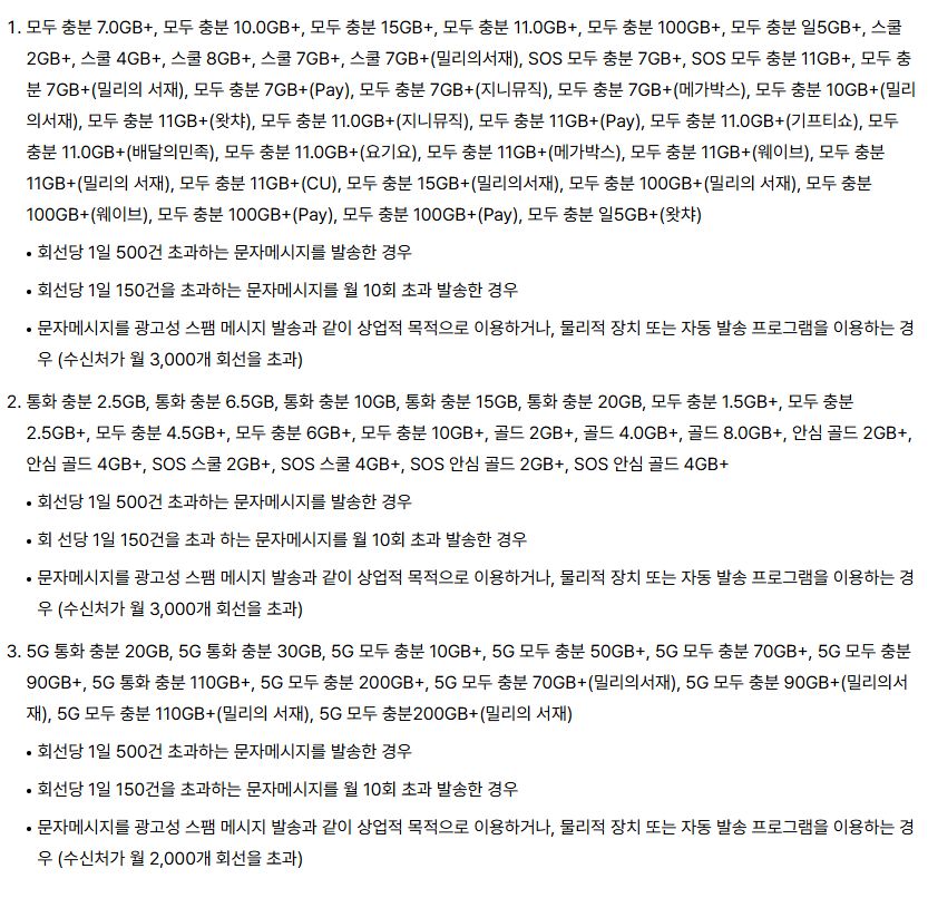다시 적지만, 다른 통신사에도 비슷한 요금제나 조건이 더 나은 요금제가 있을 겁니다.