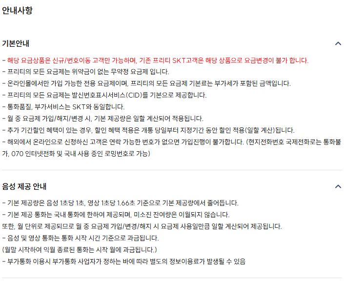 SKT프로모션 요금제들