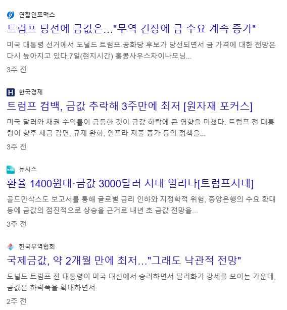 트럼프 당선에 금값은…"무역 긴장에 금 수요 계속 증가" - 연합뉴스 2024.11.7