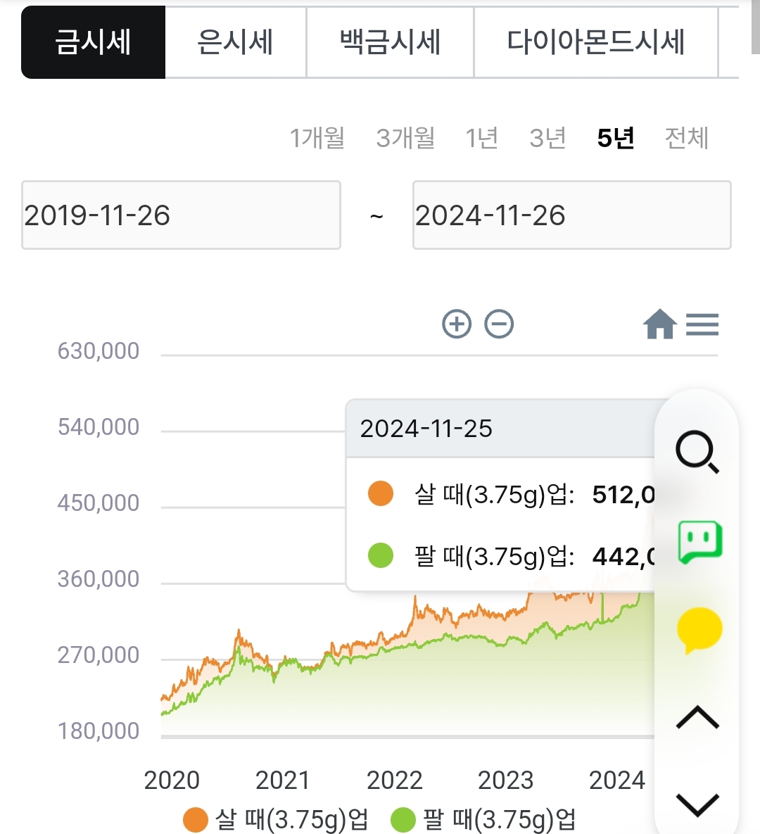 모 사이트에는 금 한 돈 시세가 고객구매기준 50만원이 넘어가는..