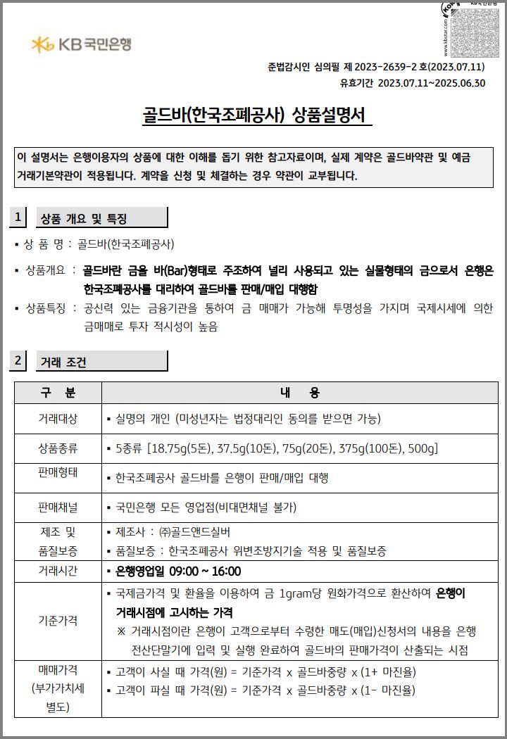 단, 취급하는 금융기관마다 취급하는 무게가 조금씩 다르기도 하고