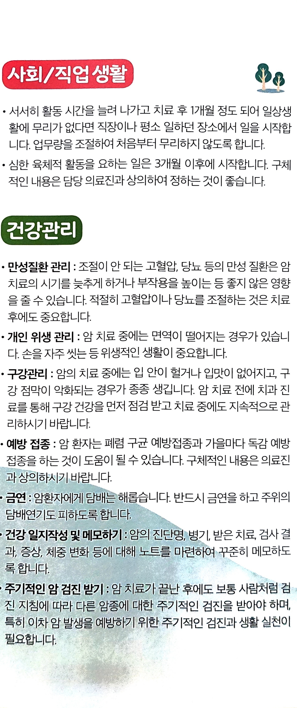 암환자의 상활관리(일상생활) (국립암센터) 본문