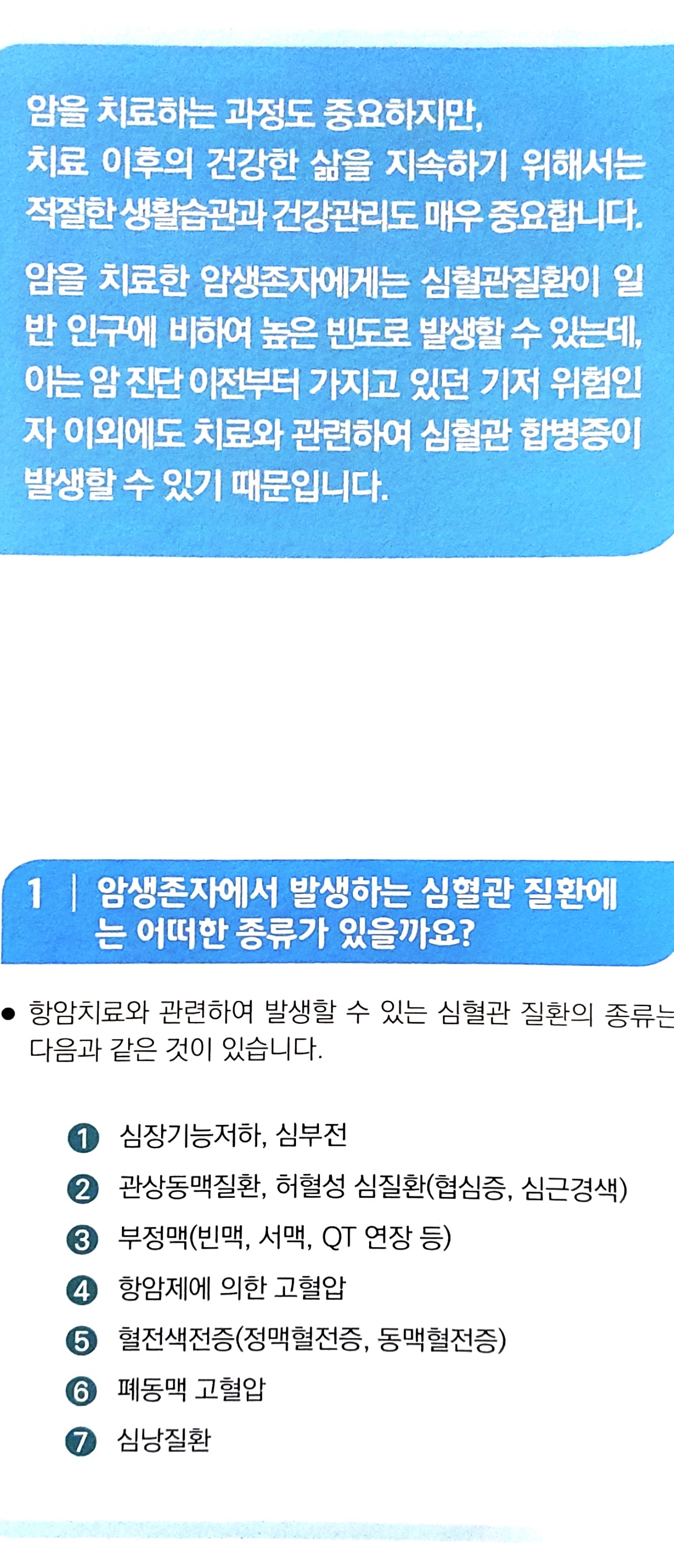 - 암생존자에서 발생하는 심혈관 질환에는 어떠한 종류가 있을까요?