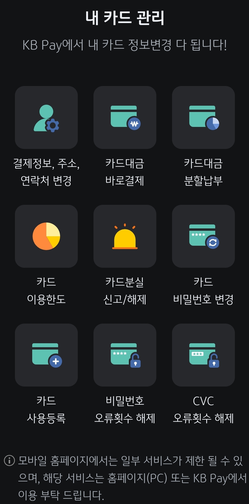 KB Pay (KB카드 앱)에서 할 수 있는 카드관리기능 본문