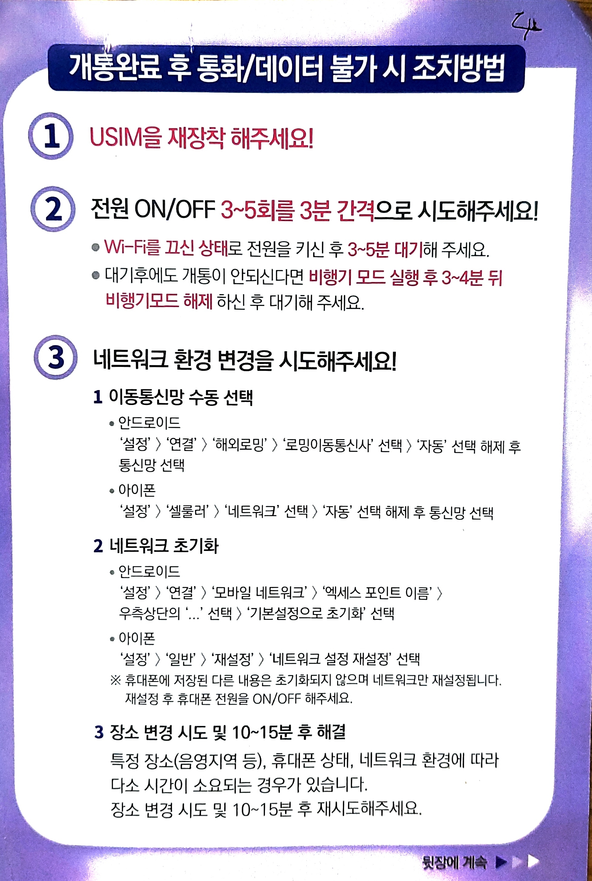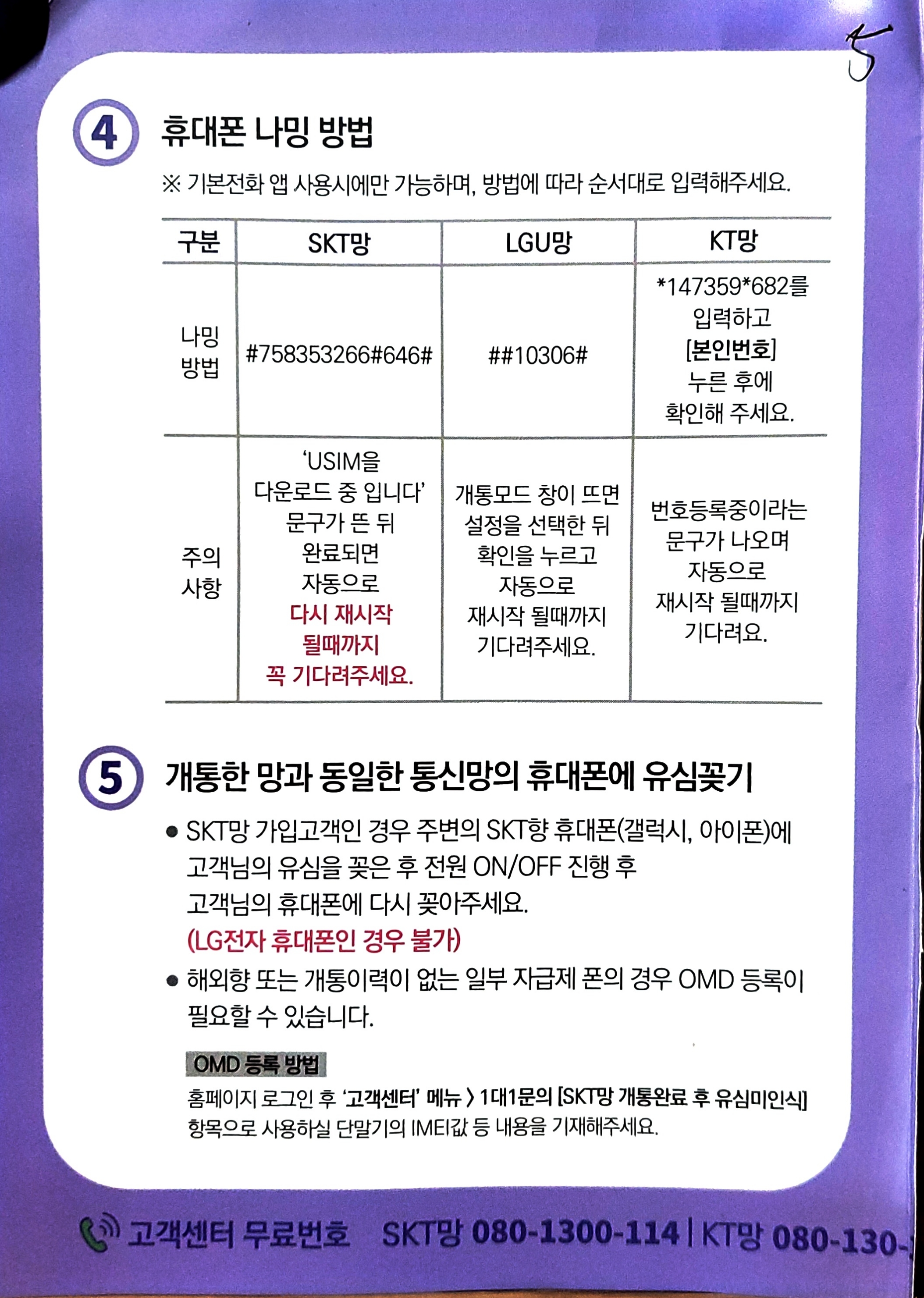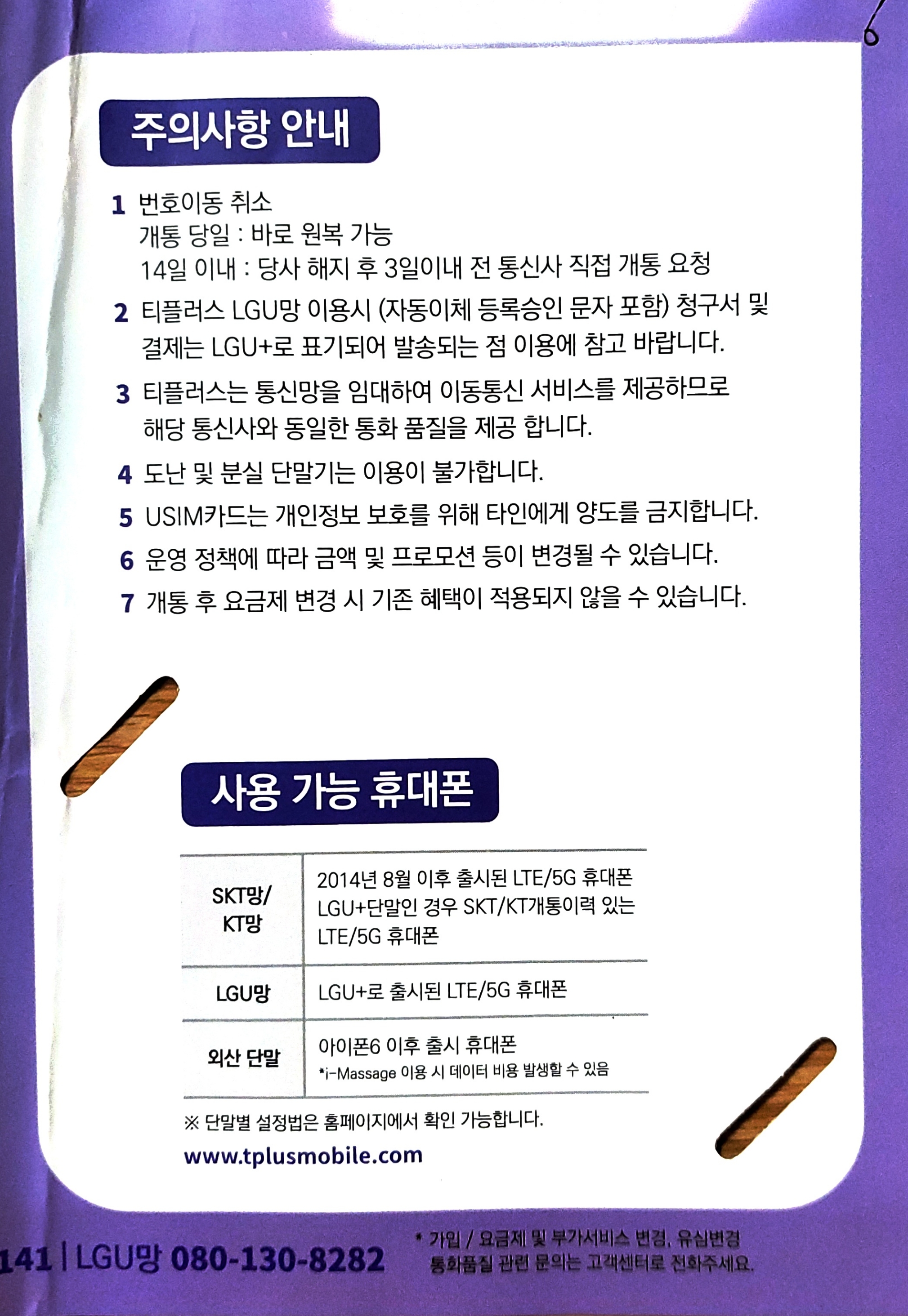 티플러스(tplus) 유심주문해 받으면 심카드와 같이 들어있는 개통가이드 본문