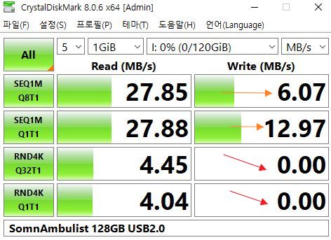 ★★★(성능측정) SomnAmbulist 128GB USB2.0 메모리 ('읽기 15MB/s, 쓰기 6MB/s'): 문제 있음+a ★★★ 본문