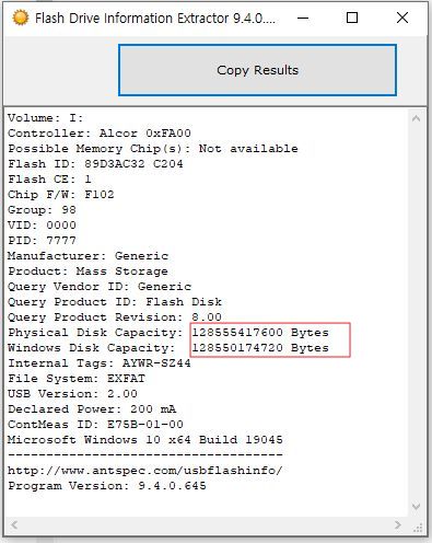 파일을 USB메모리로 복사하고 그 파일을 다시 컴퓨터로 복사해도 복사 에러가 안 났고, 파일 크기도 똑같이 표시된다. 바이너리 에디터로 파일을 열어보면 내용이 임의로 00으로 채워져있을 뿐. 이건 구매자를 속이려고 작정하고 컨트롤러를 그렇게 프로그램한 것이겠지?