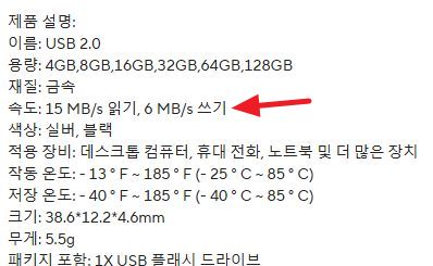 ㅡ 이것은 USB2.0 중에서도 쓰기성능이 느리다. 과거 샌디스크 저용량 저성능을 생각하면 비슷한데 문제는 내가 산 물건이 128기가라는 것이다. 휴일 하루를 써서 복사해야 용량이 찬다. 어쨌든 성능이 느린(=구린) 건 판매자도 잘 안 보이는 구석에 작은 글씨로나마 일단 적어놓은 것이다. 문제가 이것만이면 아직 '거짓말은 하지 않았다' 겠지만..