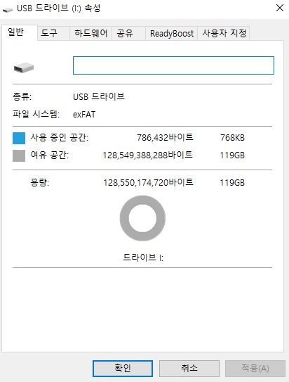이 용량은 FAT32 포맷은 윈도우10에서 지원하지 않으므로(다른 프로그램을 사용하면 되기는 하고 읽고 쓰는 것도 문제없지만 윈도우 탐색기의 포맷기능 선택지가 아니다), 기본선택지인 exFAT로 전체포맷을 해봤는데...