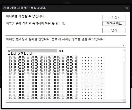 파일을 더블클릭해 시작부분 재생은 됐지만, 조금 지나니 재생이 안 된다.