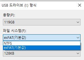 윈도우에서 NTFS, exFAT, FAT32 포맷 테스트는 그 다음에.