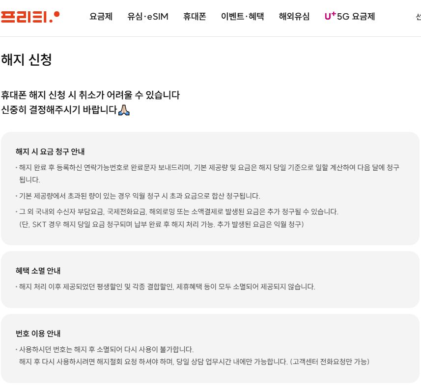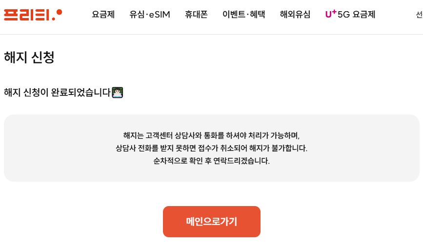 해지완료되면 온라인에서 해지신청할 때 적어넣은 연락처로 해지완료문자 통보. 해지완료 후 정산한 마지막 요금은 다음 달에 청구.