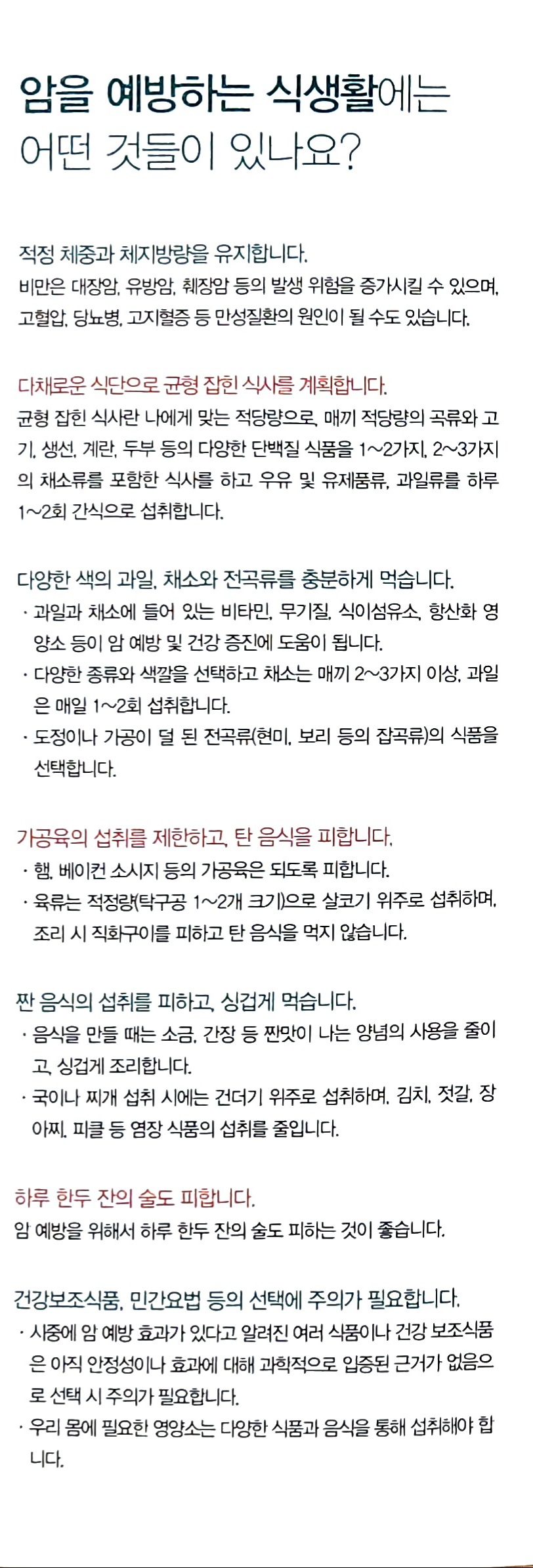 암예방 식생활 지침