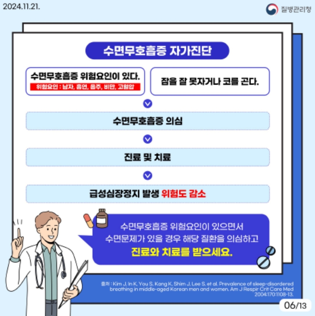 | 수면무호흡증, '간밤의 돌연사' 원인. 코골이 할 때부터 자기 체크하기 (0) | 2024.12.04 |