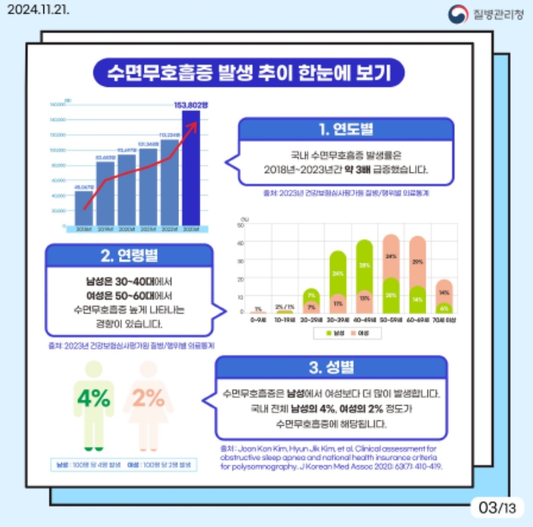 - 수면무호흡증 환자 5년새 3배 증가(’18년 45,067명 → ’23년 153,802명)