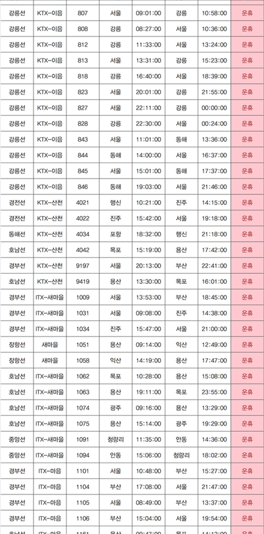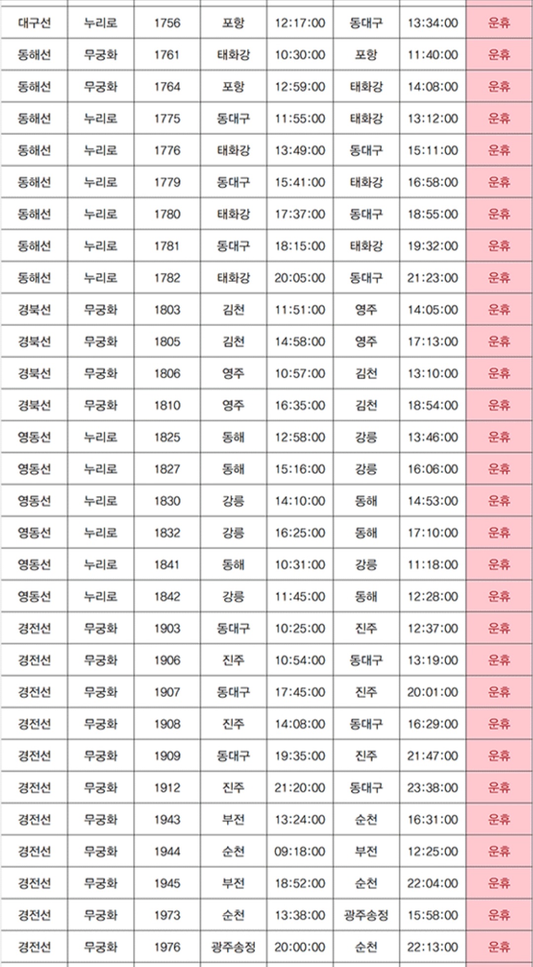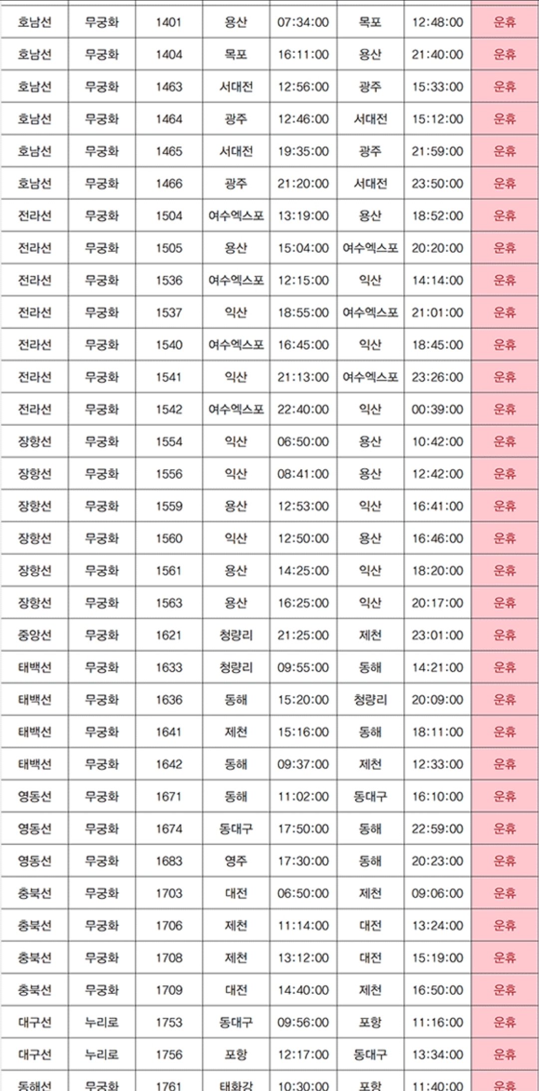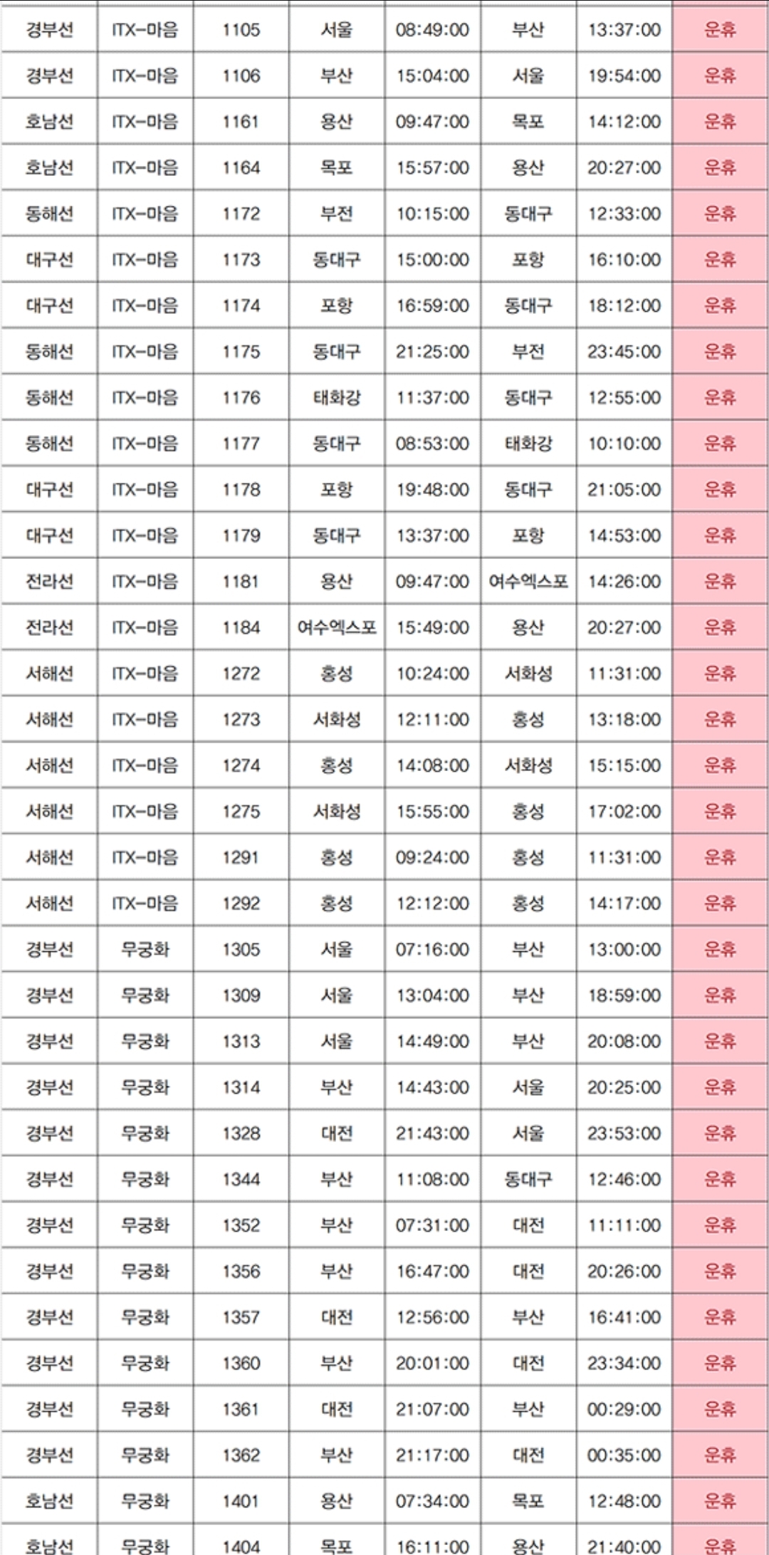 혹시 예약열차가 운휴노선인지 확인해보세요.