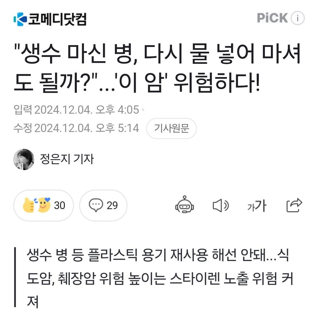생수병을 재활용하지 말라는 기사 등 (feat. 전자레인지) 본문