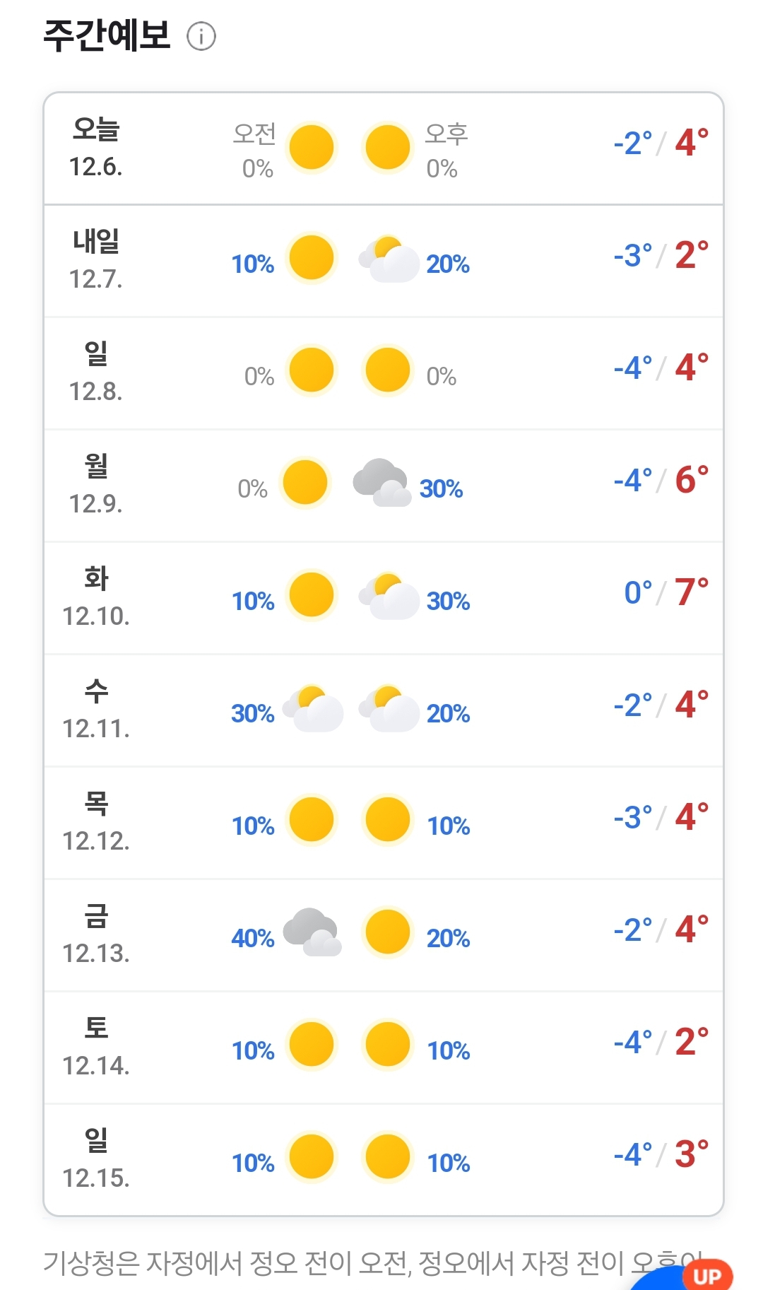 2024.12.6.금.~ 12.15.일. 일기예보: 아침 영하 - 낮 영상인 겨울날씨. 눈/비 예보 주의 본문