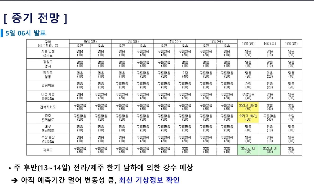 일부 스샷입니다. 더 많은 내용과 설명이 나오니 기상청 영상을 보세요.