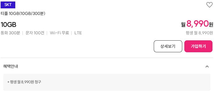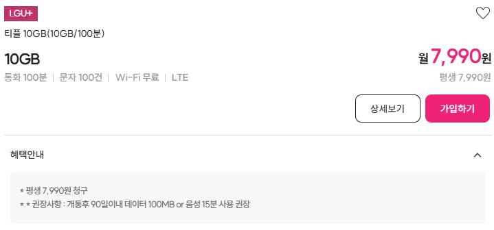 데이터 10GB, 7500원 요금제+