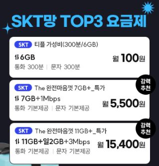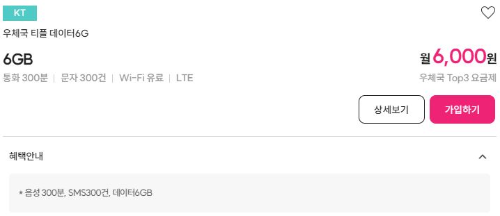 그 중 기간한정이 지난 다음에도 6천원대면서 데이터 6기가에 통화문자 300건 이런 조건인 요금제들이 SKT, LGU+, KT망에 다 있습니다.