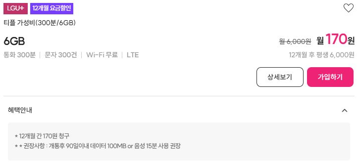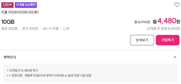 2024.12. 티플러스(tplus) 알뜰폰 행사 요금제 몇 가지 본문