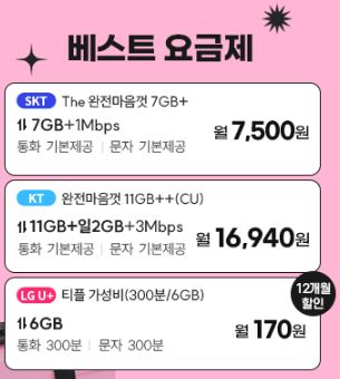 SKT쪽은 7개월 프로모션, LGU+ 쪽은 12개월 프로모션인 요금제들이 있습니다.