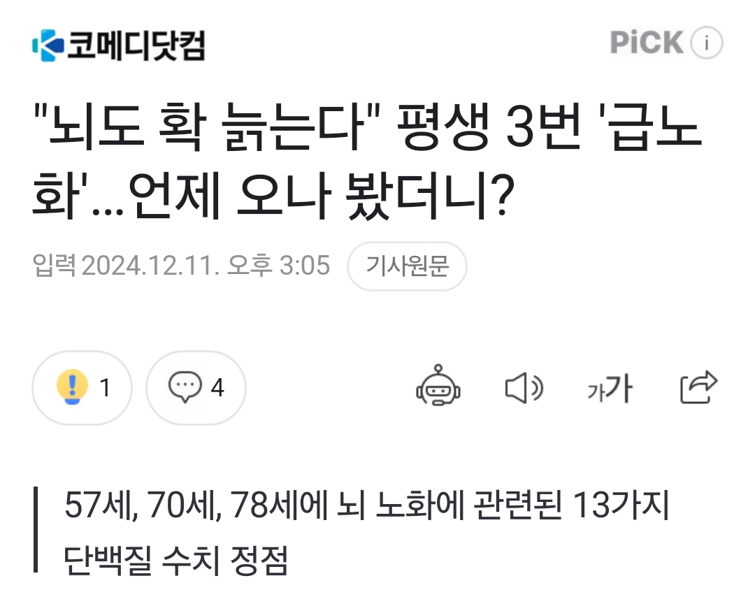 장년기 이후 뇌가 늙는 3계단: 57세, 70세, 78세? 본문