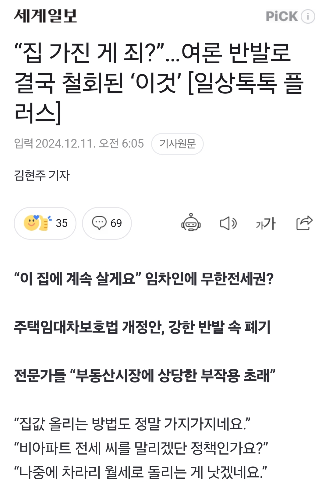 “이 집에 계속 살게요” 임차인에 무한전세권? 주택임대차보호법 개정안, 강한 반발 속 폐기 전문가들 “부동산시장에 상당한 부작용 초래” “집값 올리는 방법도 정말 가지가지네요.” “비