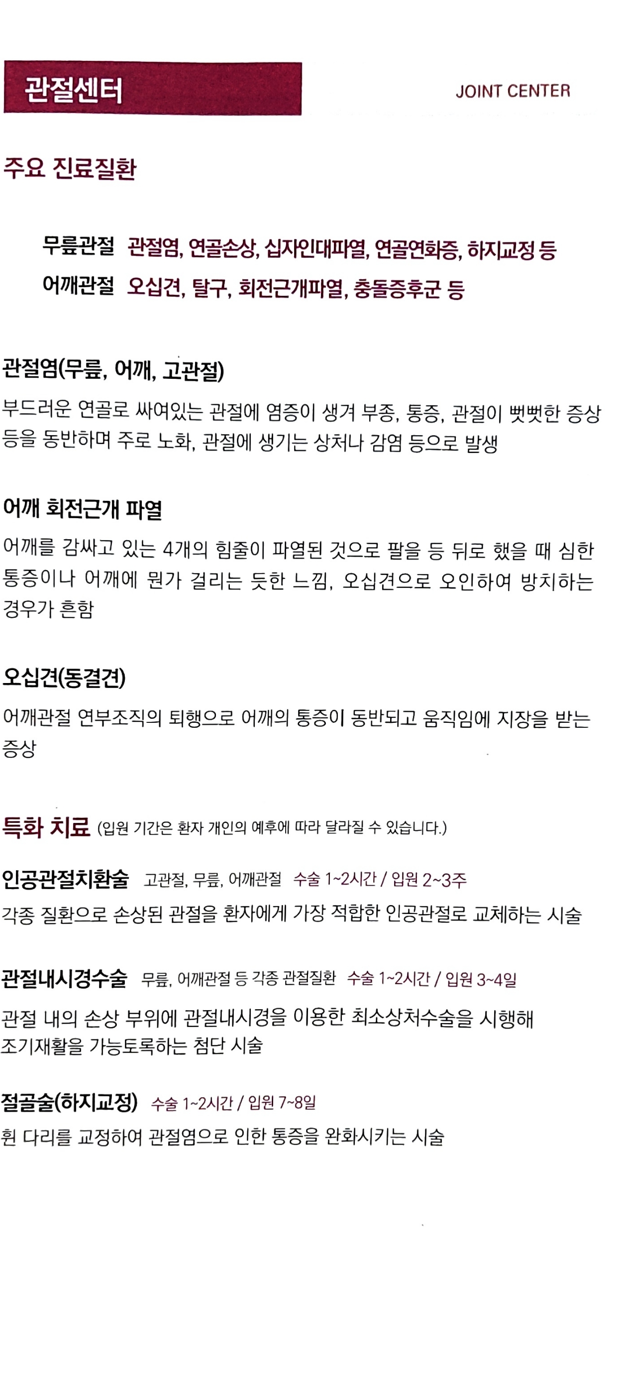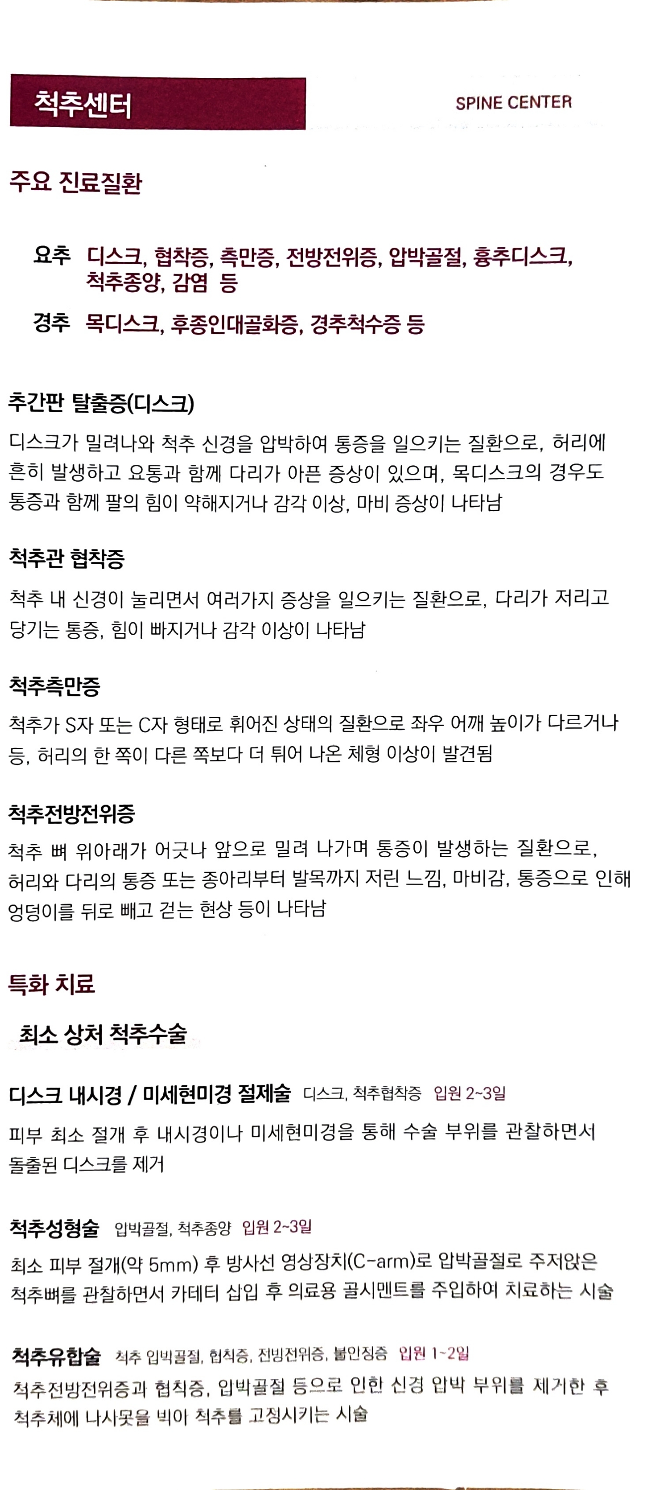 대전선병원 척추관절센터 소책자 본문