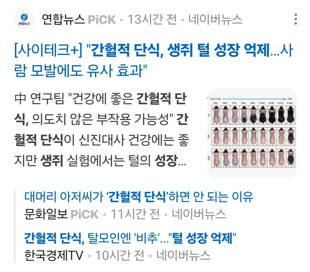 간헐적 단식이 털 성장에 나쁘다(탈모가능성)는 동물실험 하나 본문
