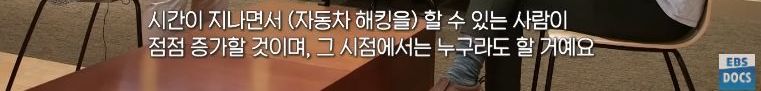 30분부터, 2010년에 자동차 해킹 논문을 쓴 교수와의 인터뷰와 시연. 2015년 공중망을 건너 남의 자동차 인포테인먼트 시스템을 해킹하는 와이어드 시연 영상.