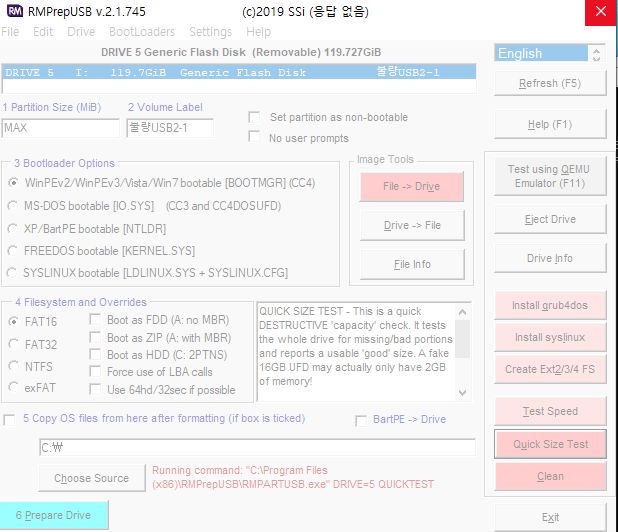 ★★★ USB메모리 실제용량 간이 확인: RMPrepUSB, Media Tester, ChipGenius 본문