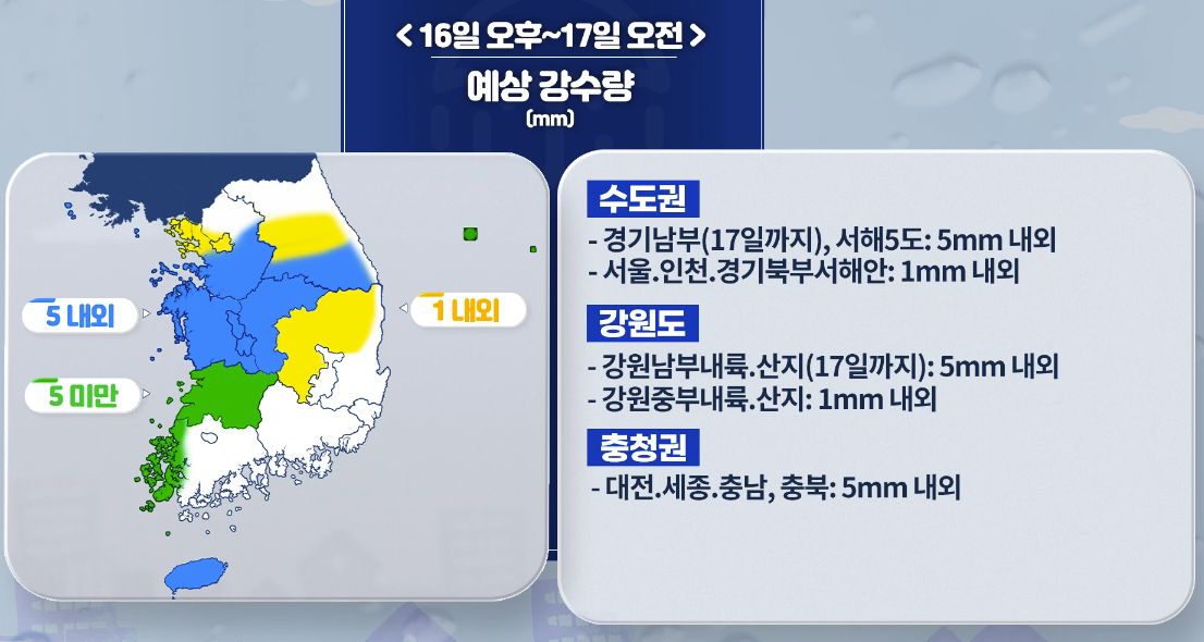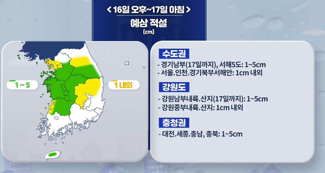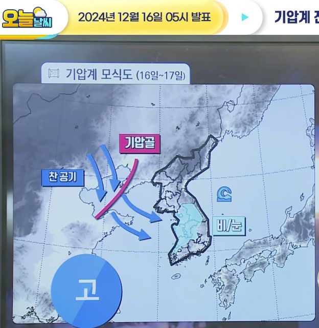 [오늘날씨] 중부지방 늦은 오후부터 비/눈 점차 내려요! 12월 16일 5시 기준