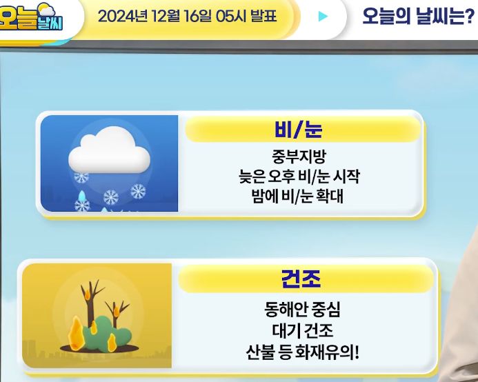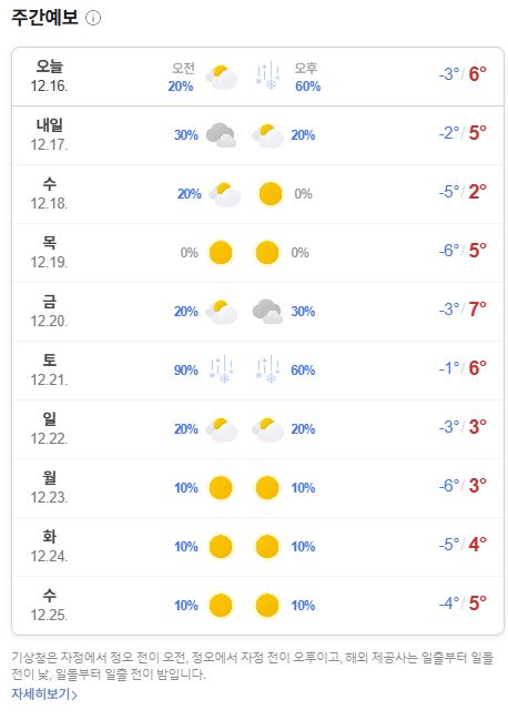 2024.12.17.화~ 12.25.수(성탄절): 일기예보: 오늘 밤 눈/비, 본문