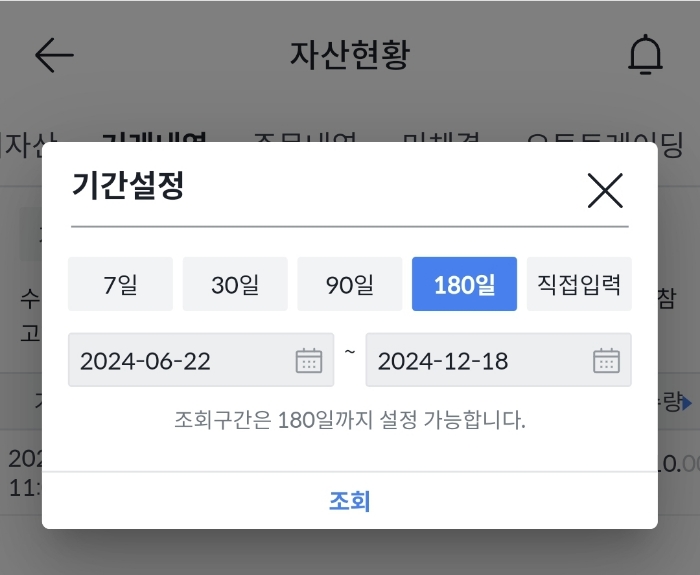 참고로, 빗썸 과거거래기록 조회는 180일까지만 됩니다. 제 마지막 거래가 언제였는지는 알 수도 없네요. 장기 미거래일 때도 알 수 있도록, 180일로 하더라도 마지막 거래일로부터 기산해 기록을 남겨주면 좋을텐데.