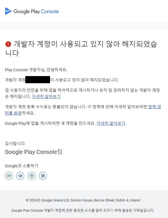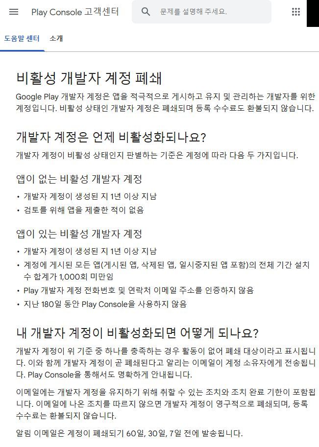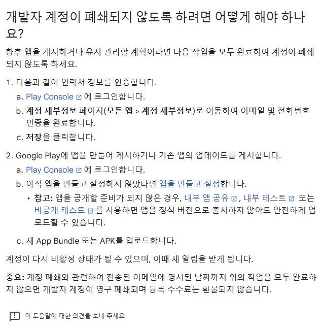 구글 플레이 콘솔, 비활성 개발자 계정 폐쇄(구글 직권 해지) 본문