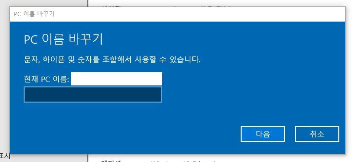 그리고 "이 PC의 이름바꾸기" 버튼